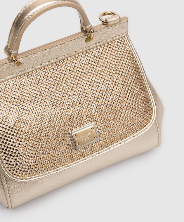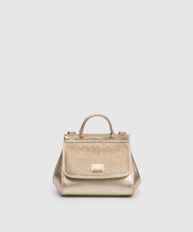 Дитяча золотиста шкіряна сумка Sicily з кристалами