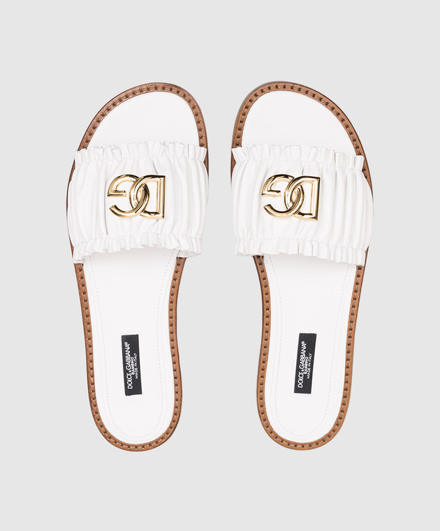 Дитячі білі шкіряні шльопанці