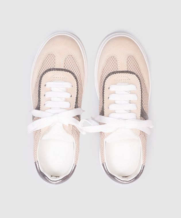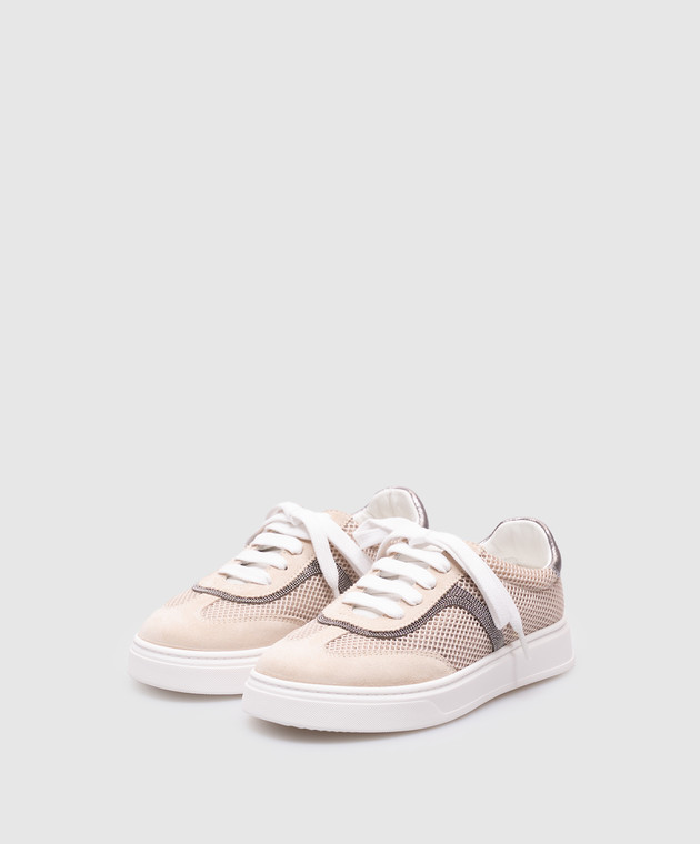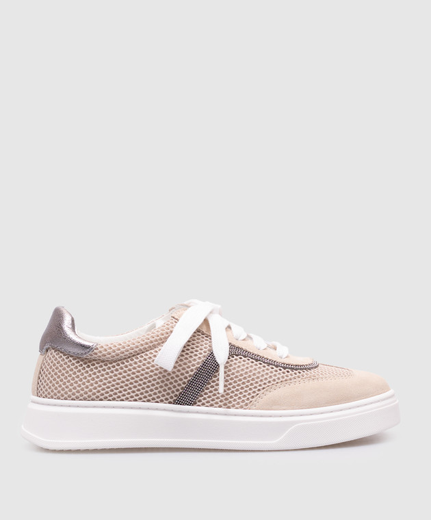 Дитячі бежеві комбіновані кросівки з ланцюжком моніль