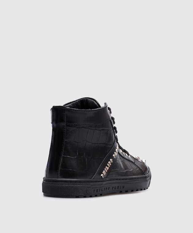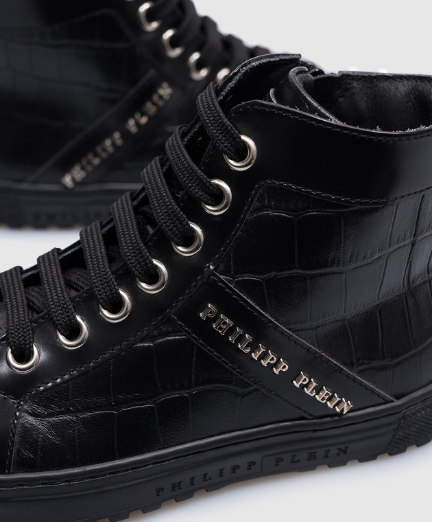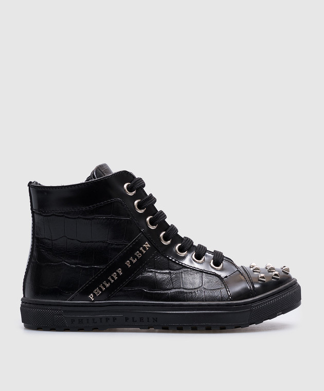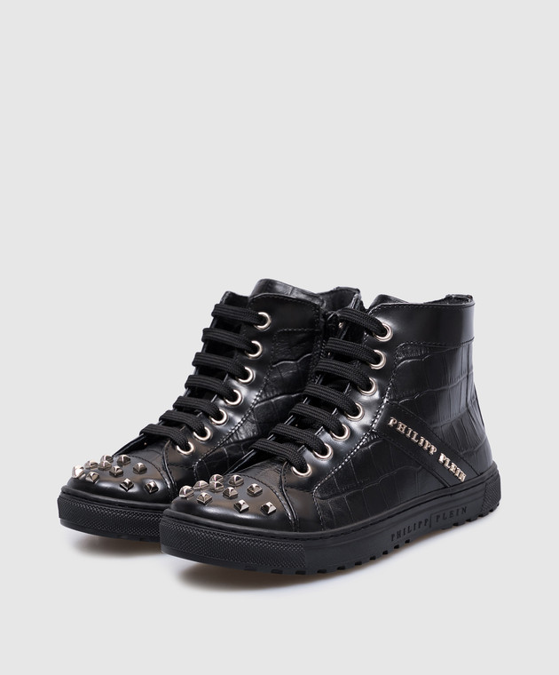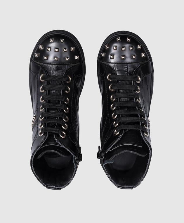 Дитячі чорні шкіряні кросівки з металевим логотипом