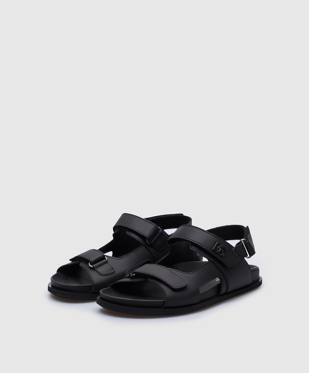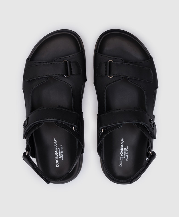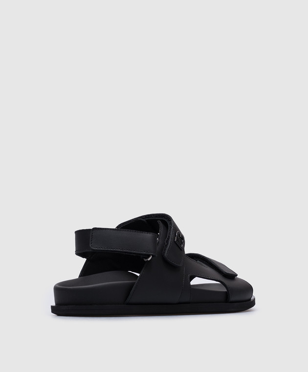 Дитячі чорні шкіряні сандалі з металевою монограмою логотипа