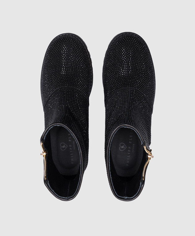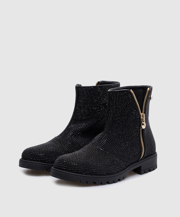 Дитячі чорні замшеві черевики з кристалами