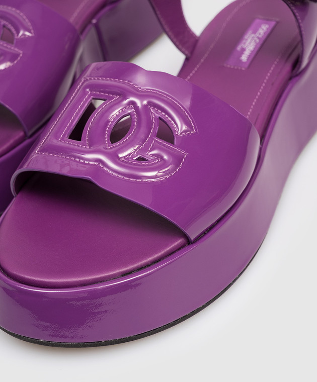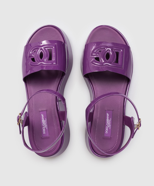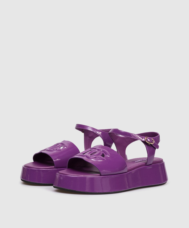 Дитячі фіолетові шкіряні лаковані босоніжки