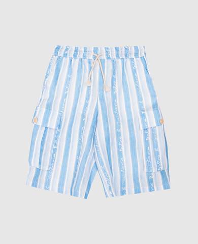 Дитячі блакитні шорти з льону в смужку