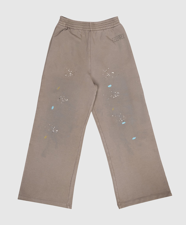 Дитячі коричневі спортивні штани в принт у вигляді плям фарби