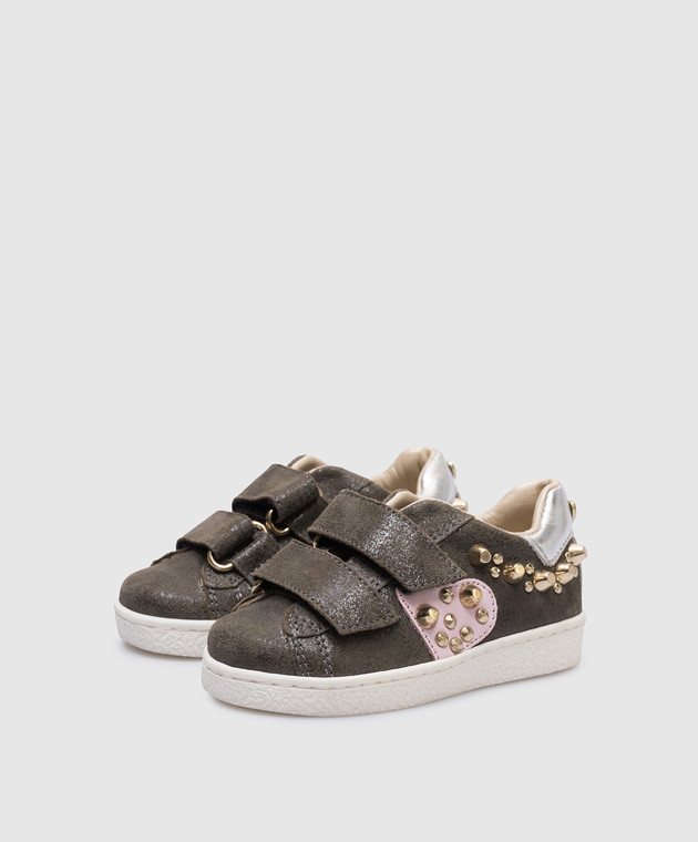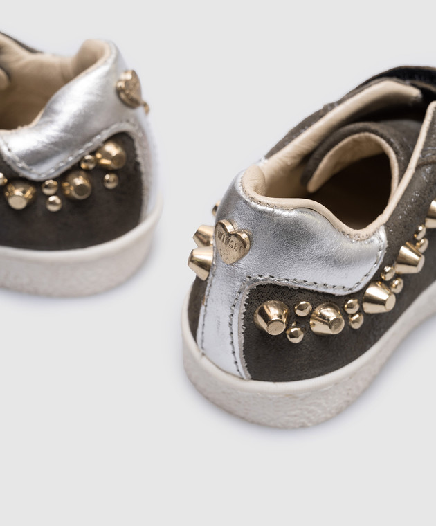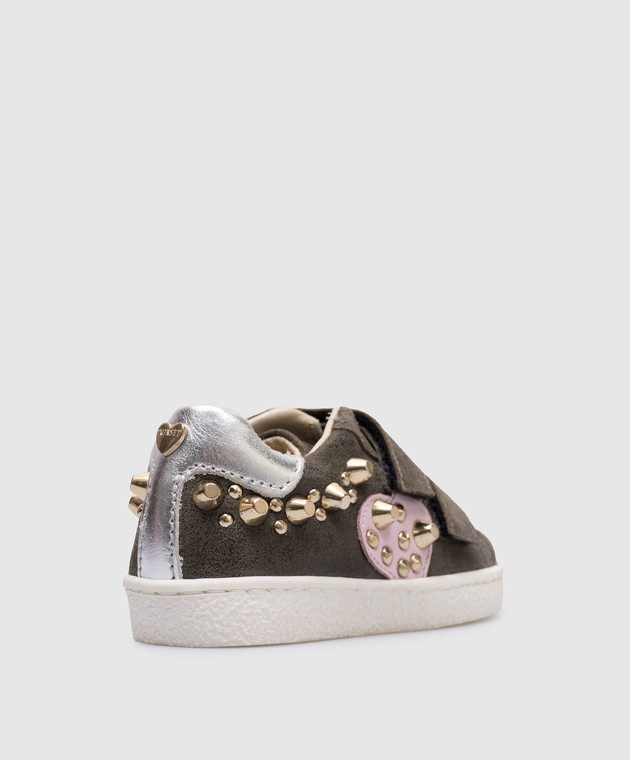 Дитячі шкіряні кросівки кольору хакі із заклепками