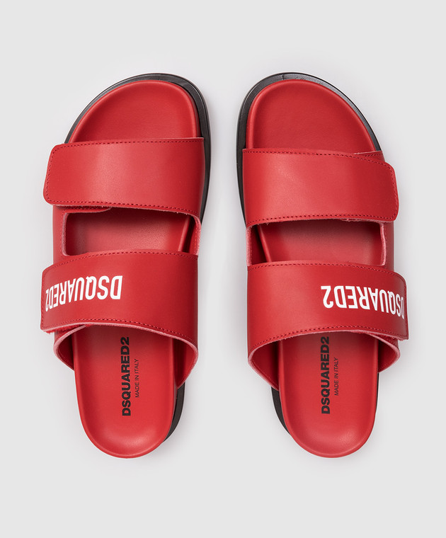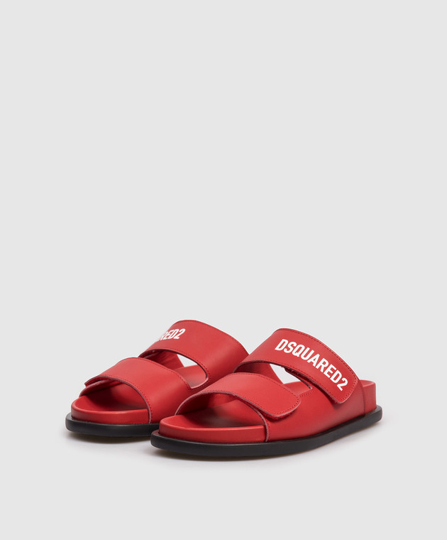 Дитячі червоні шкіряні шльопанці з логотипом