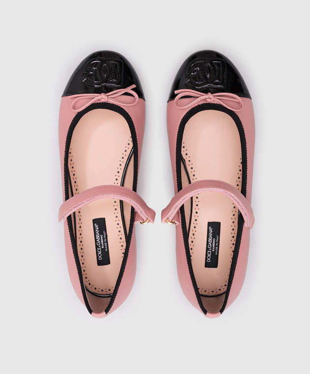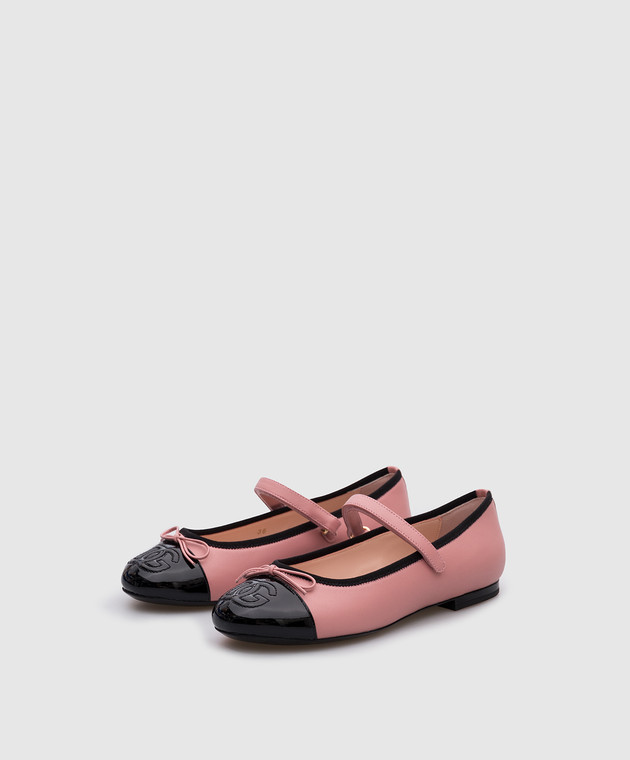 Дитячі рожеві шкіряні балетки з монограмою логотипа