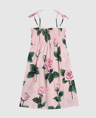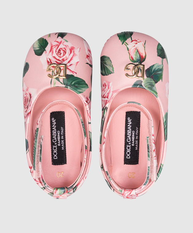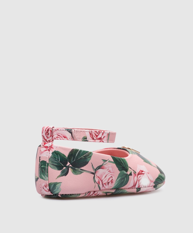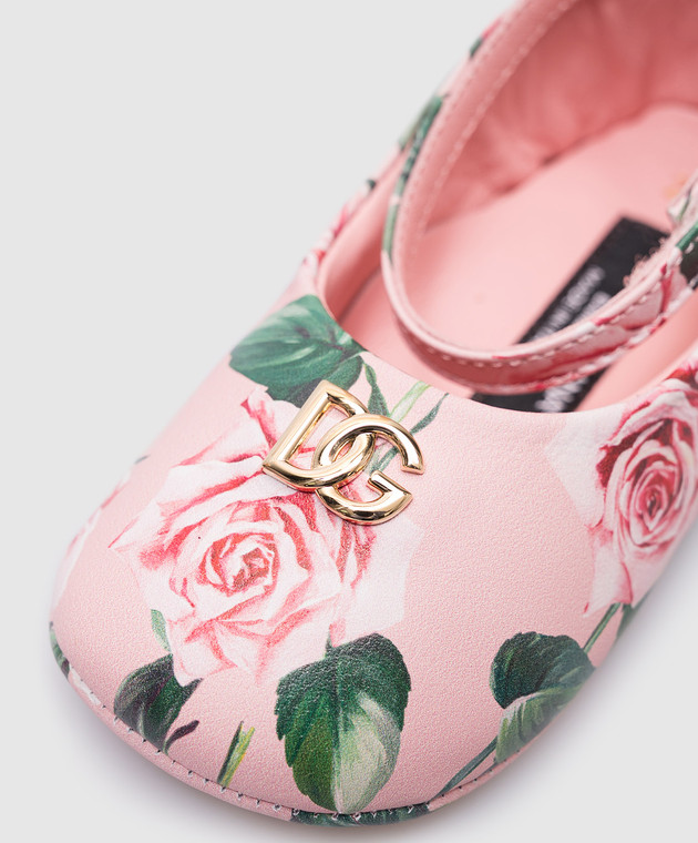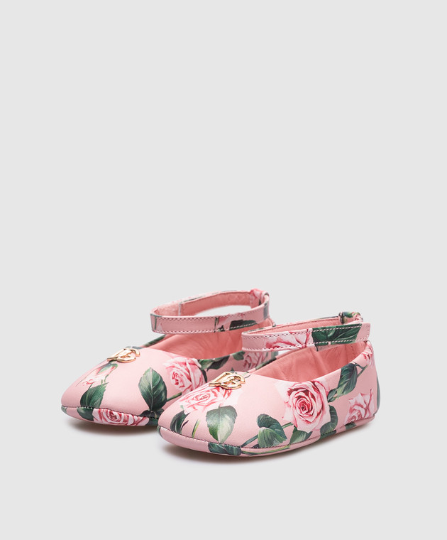 Дитячі рожеві шкіряні балетки в принт троянди з монограмою логотипа