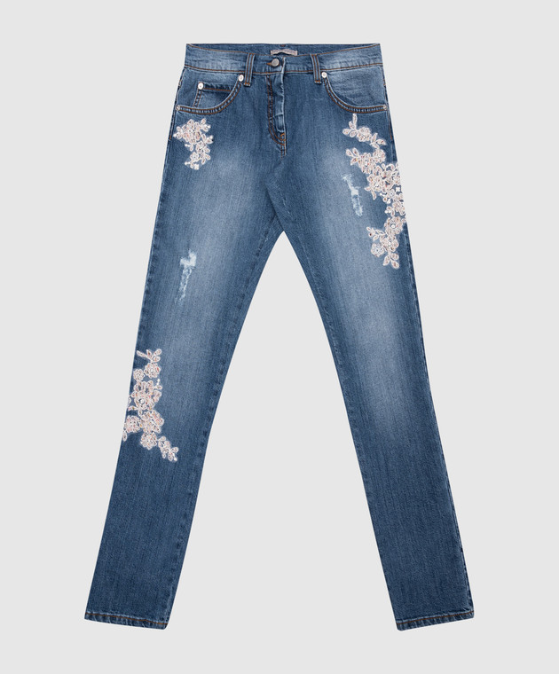 Дитячі сині джинси з квітковою аплікацією з ефектом потертості