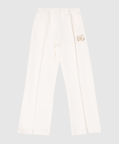 Дитячі спортивні штани кольору айворі з вишивкою монограми