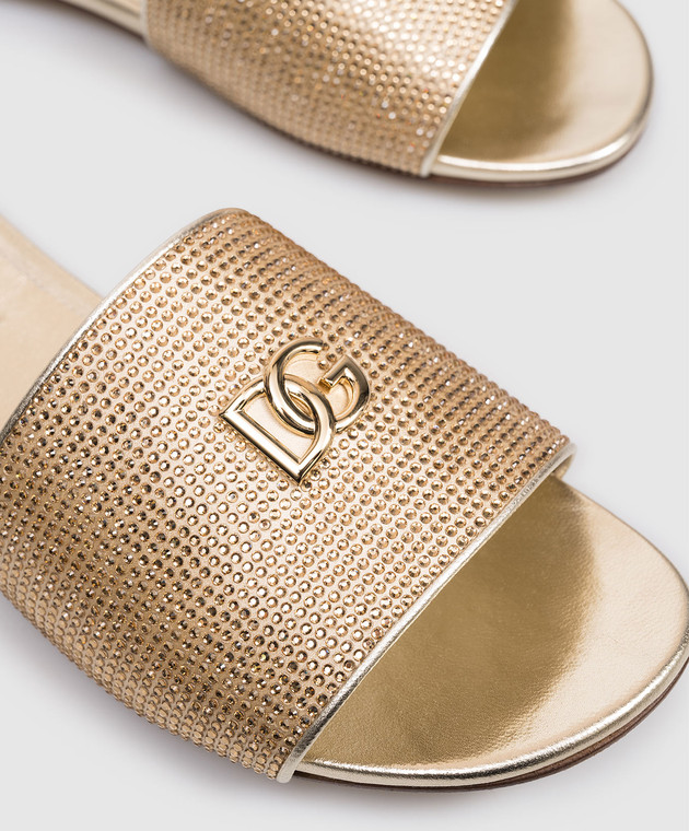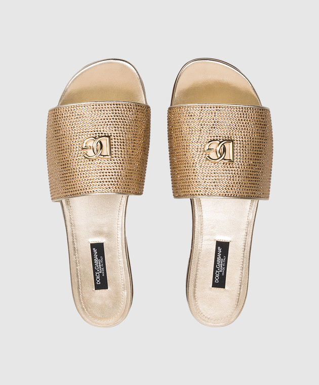 Дитячі золотисті шльопанці з кристалами