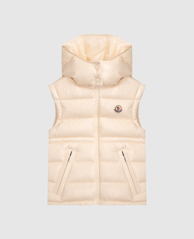 Дитячий бежевий пуховий жилет з нашивкою логотипа