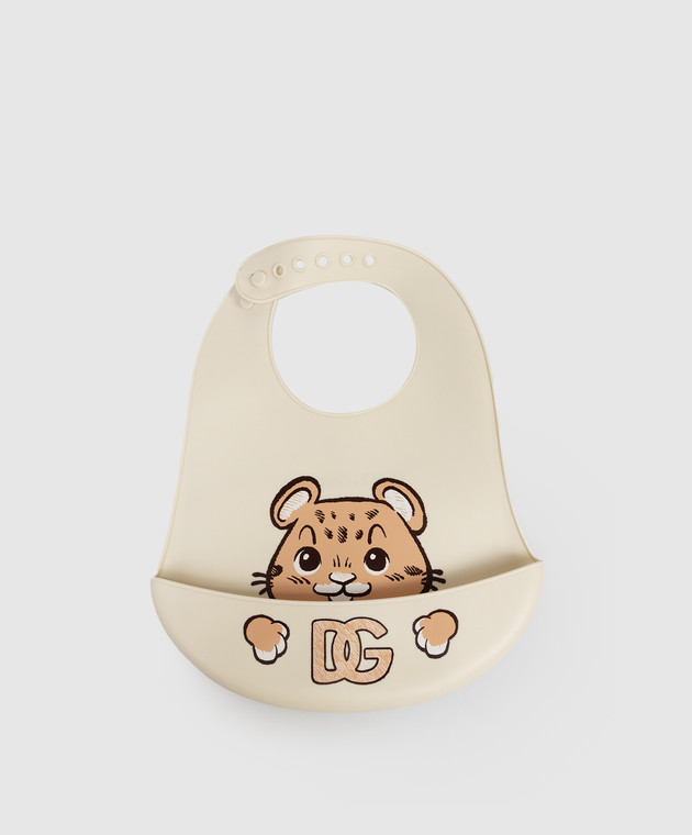 Дитячий бежевий силіконовий слинявчик з принтом