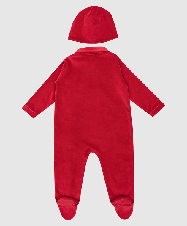 Дитячий червоний велюровий набір з шапки та комбінезона