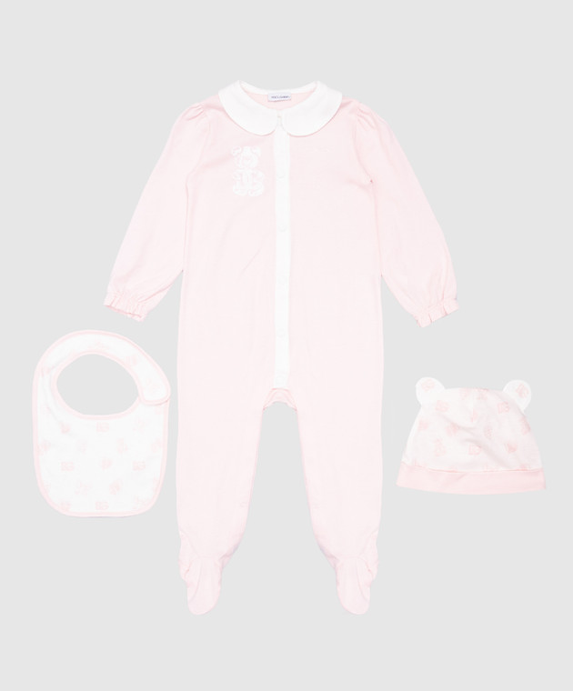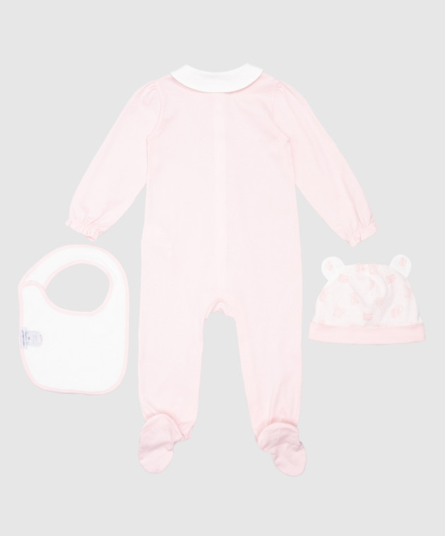 Дитячий рожевий набір з комбінезона, шапки та слинявчика з логотипом