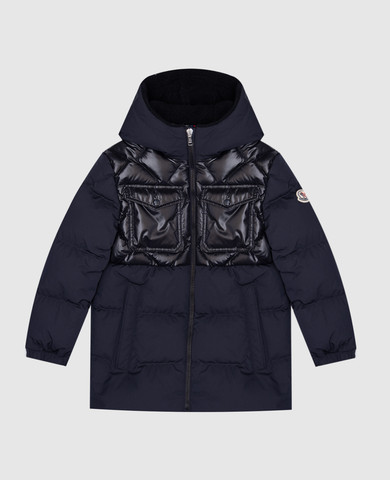 Дитячий синій стьобаний пуховик з патчем логотипа