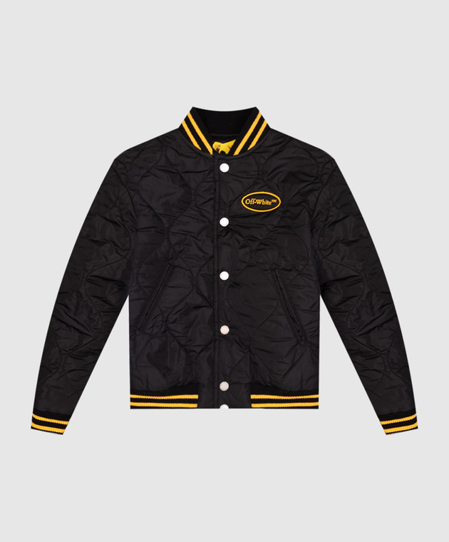 Дитячий стьобаний чорний бомбер з вишивкою логотипа