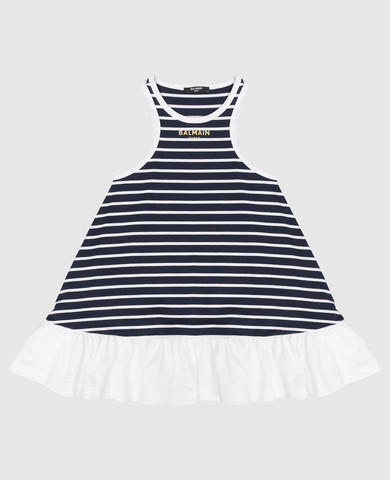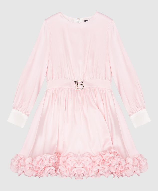 Дитяча рожева сукня із шовку з рюшами та металевим логотипом