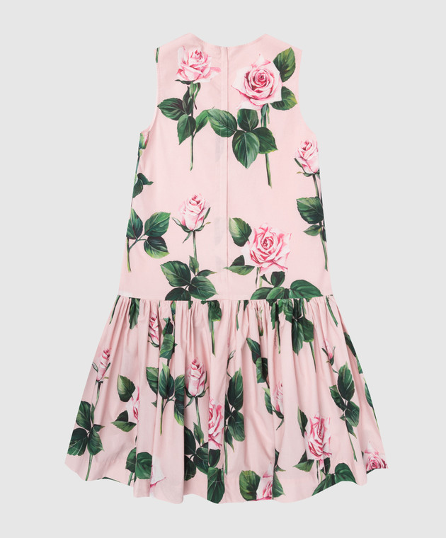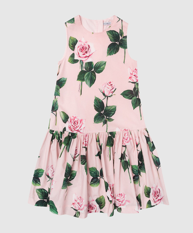 Дитяча рожева сукня в брендовий квітковий принт з воланом