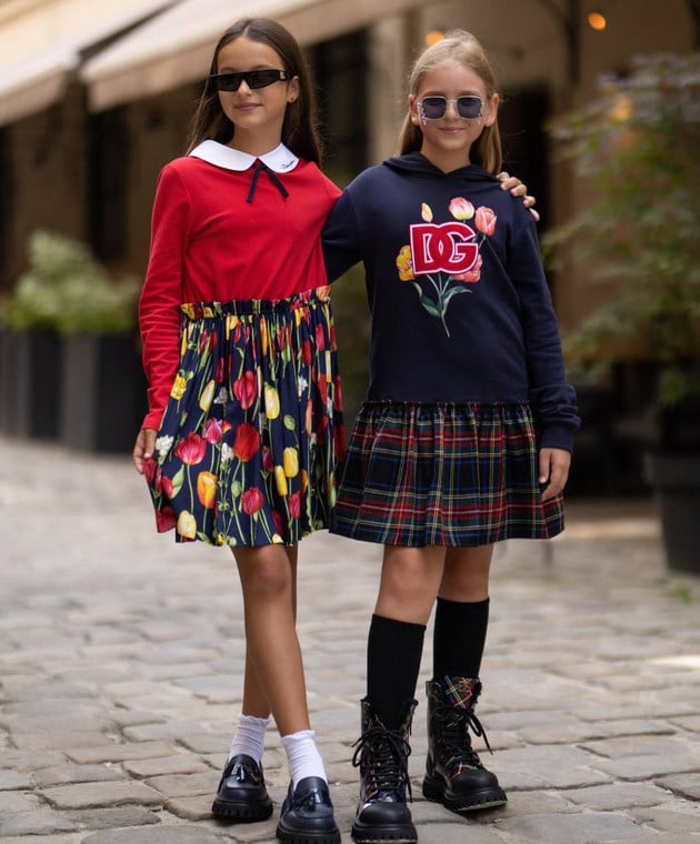 • Декор нашивка логотипа DG, квітковий принт тюльпани, візерунок клітинка, драпірування