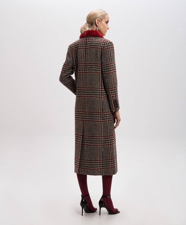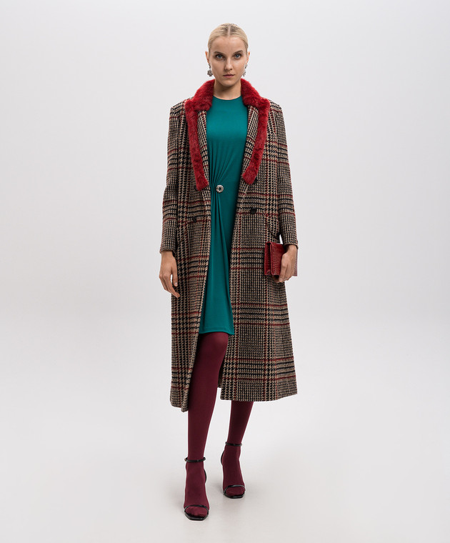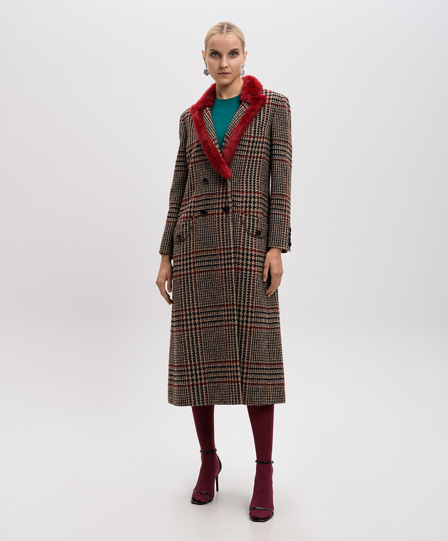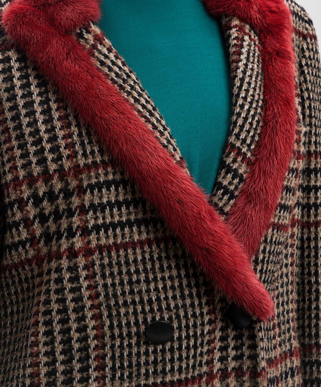 Двобортне пальто з вовни у віндзорську клітинку з хутром норки