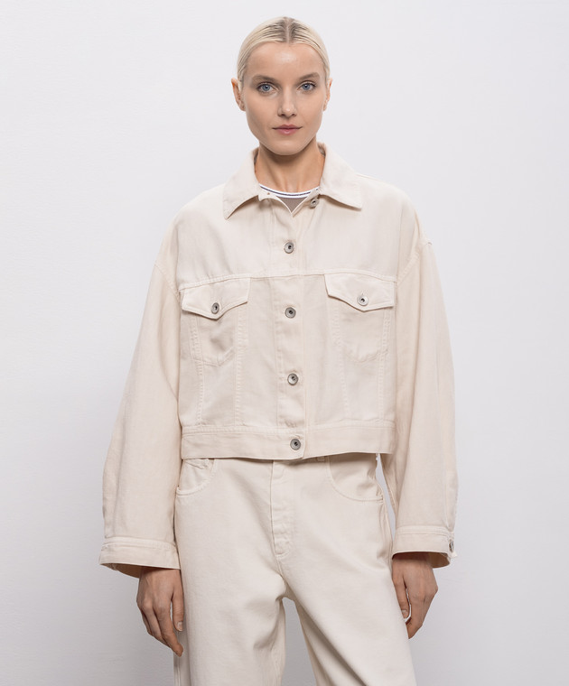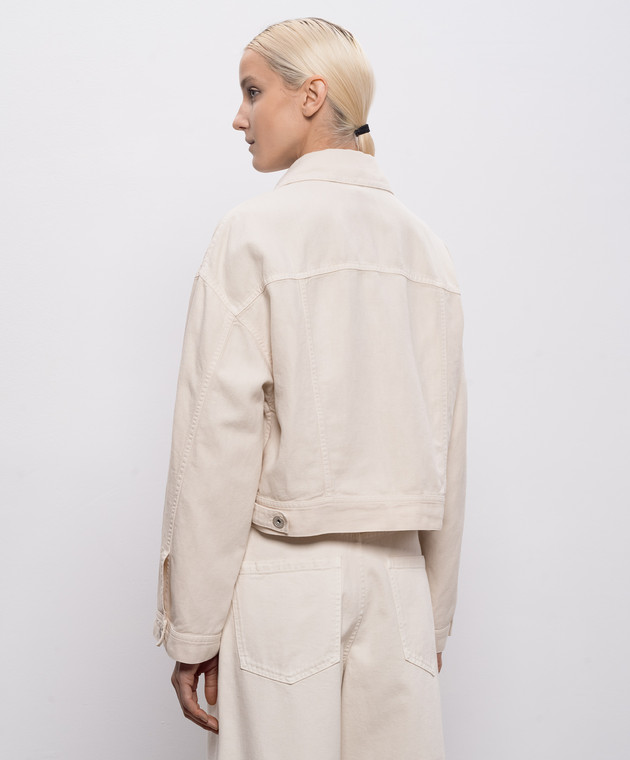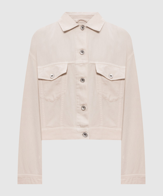 Джинсова куртка кольору айворі з ланцюжком моніль