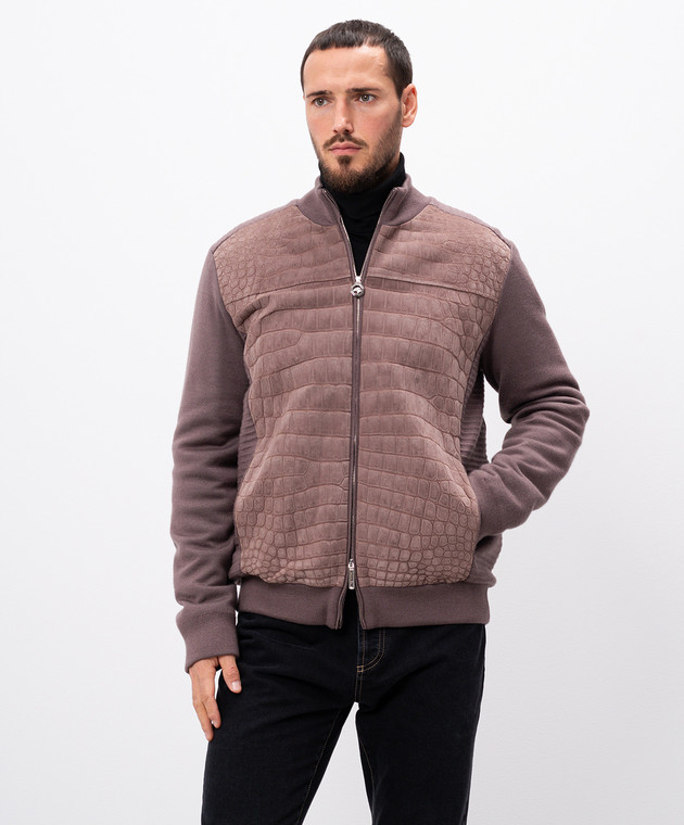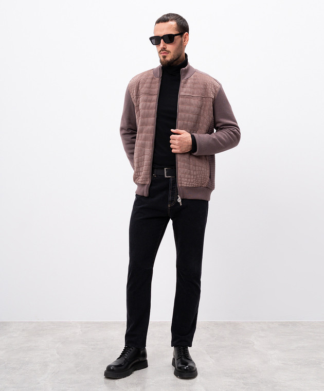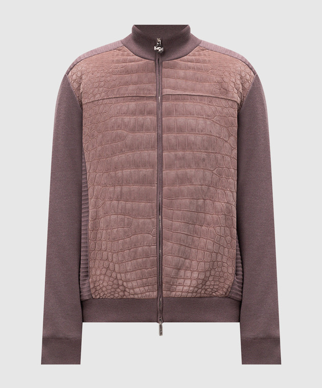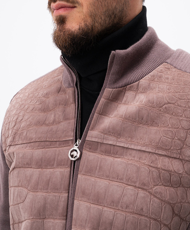 Фіолетова комбінована куртка зі шкірою крокодила, кашеміру та шовку