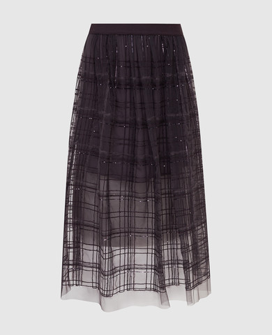 Фіолетова спідниця міні з вовни в квітковий візерунок з кристалами