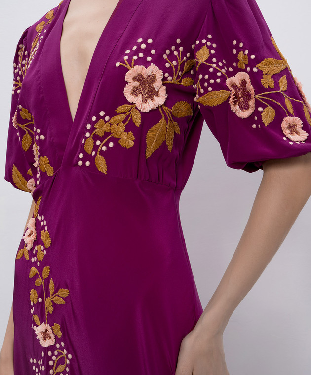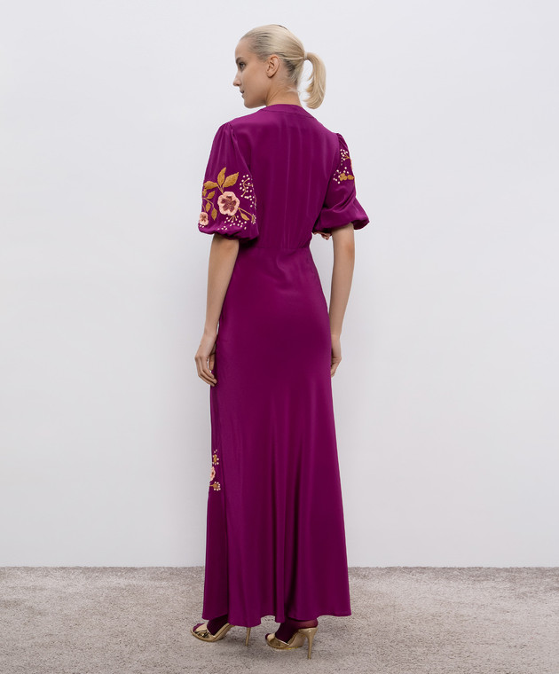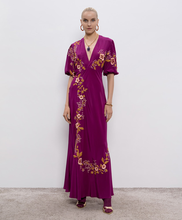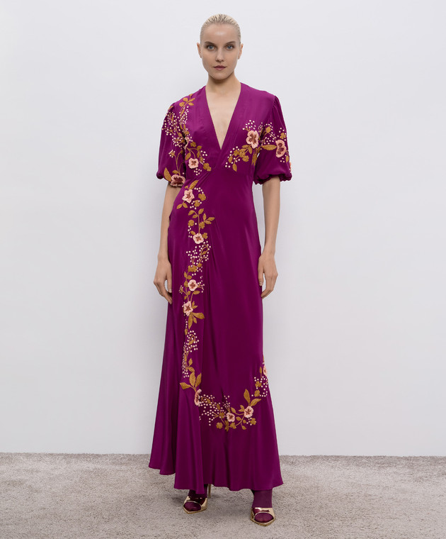 Фіолетова сукня максі із шовку з квітковою аплікацією