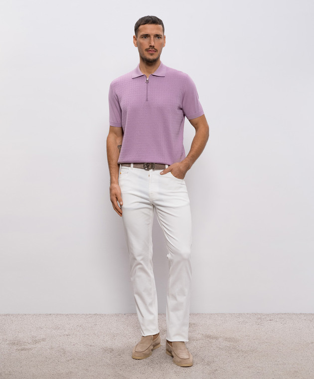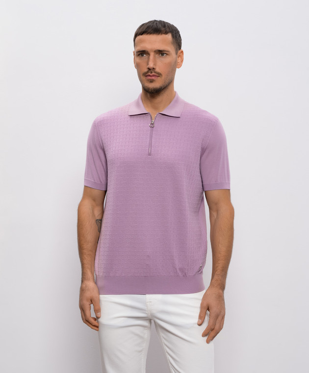 Фіолетове поло з вовни, кашеміру та шовку у візерунок