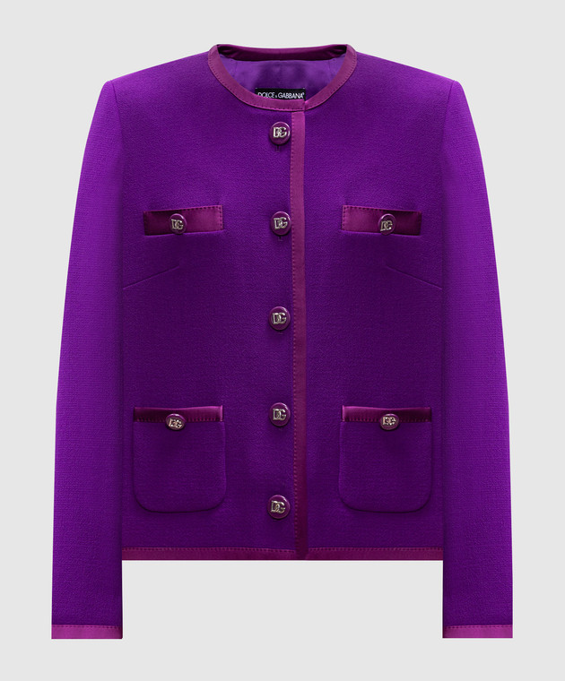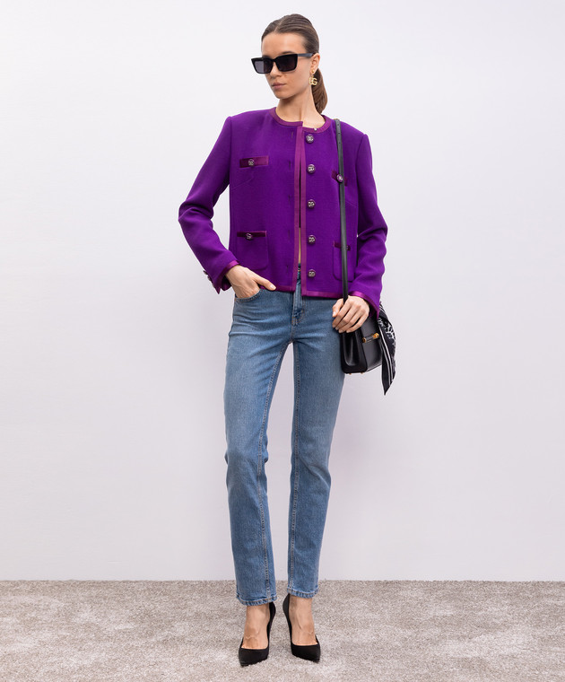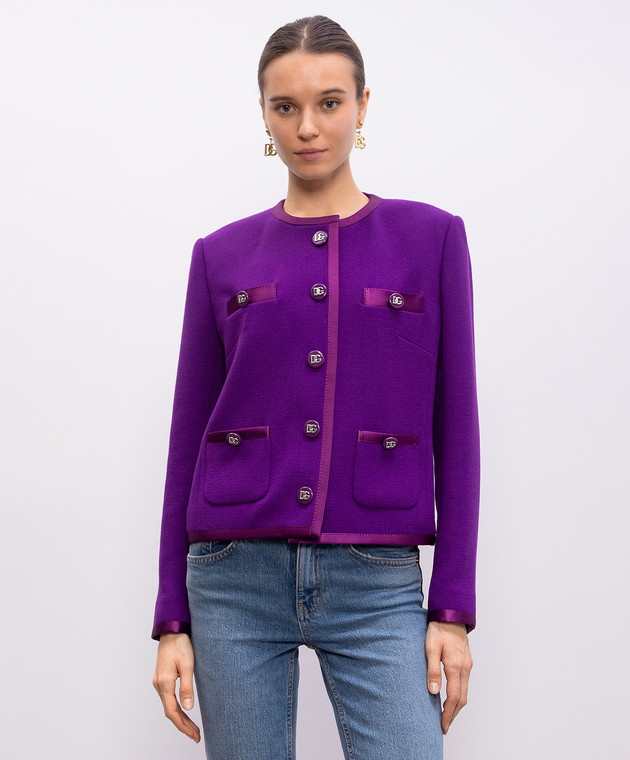 Фіолетовий жакет з вовни та шовку з брендованою фурнітурою