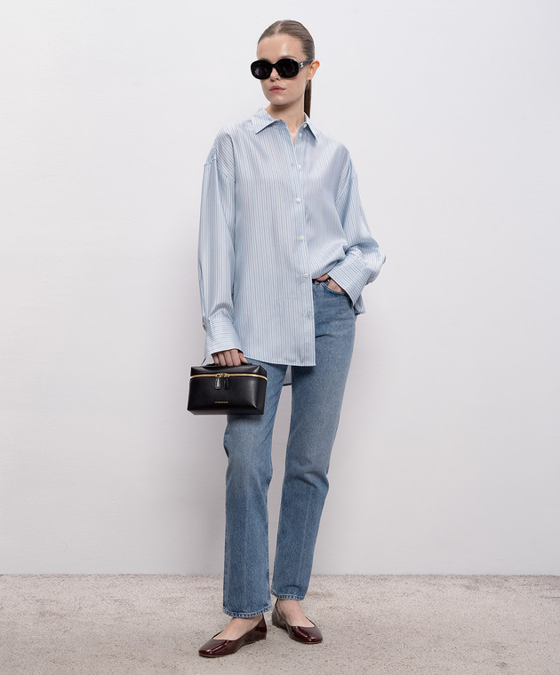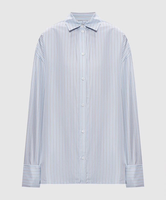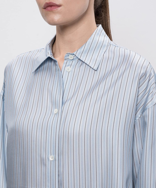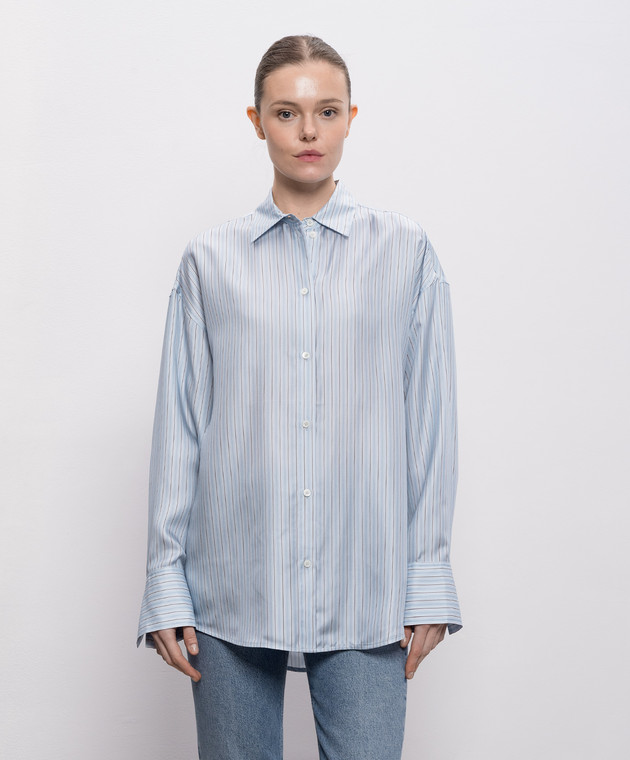 Блакитна блуза із шовку в смужку