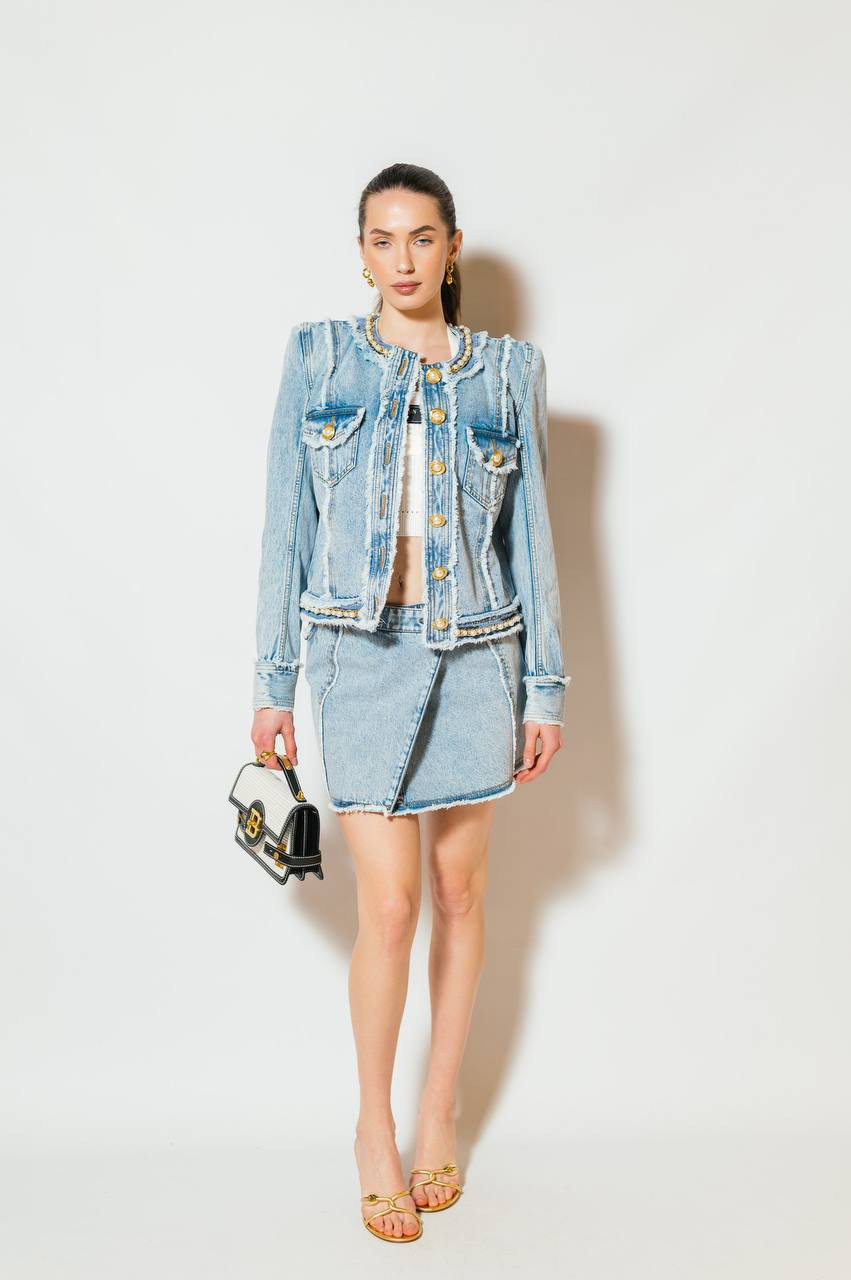 • Декор ефект потертості, необроблені краї, оздоблення ланцюжком, намистини, брендова фурнітура з намистинами