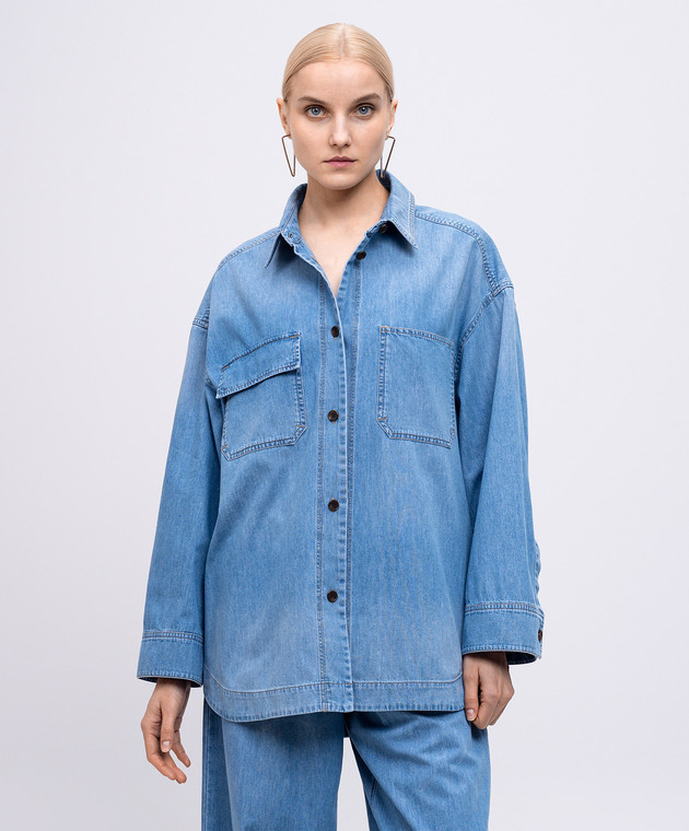 Блакитна джинсова сорочка з нашивкою логотипа