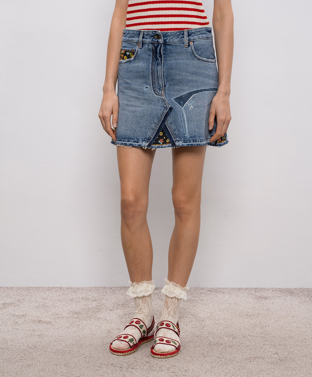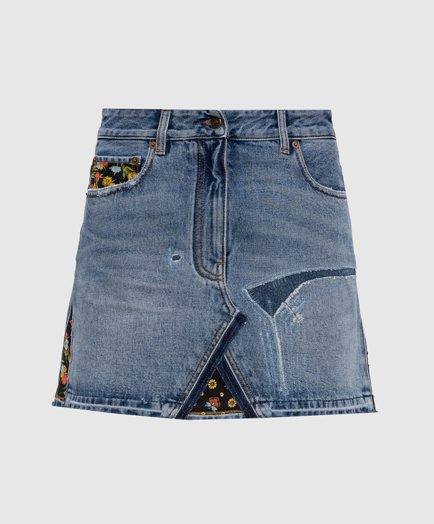 Блакитна джинсова спідниця міні з патчем логотипа