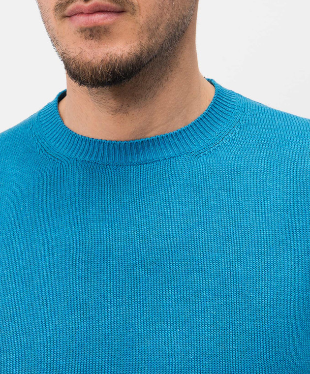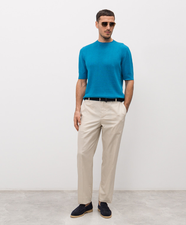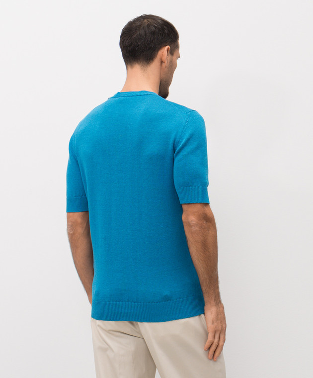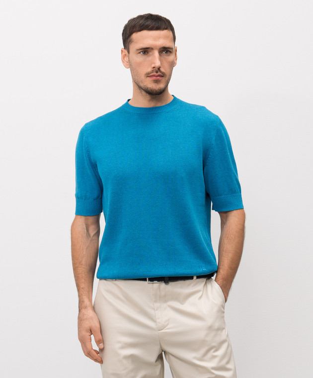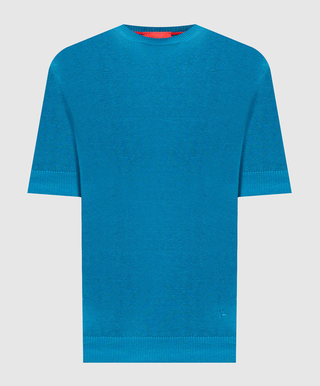 Блакитна футболка з льону та шовку