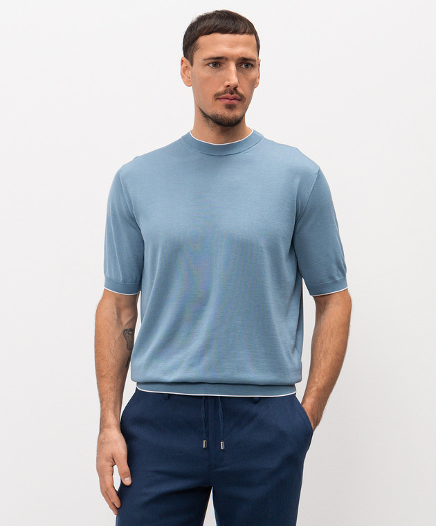 Блакитна футболка із шовку
