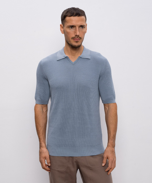Блакитна футболка з коміром-поло