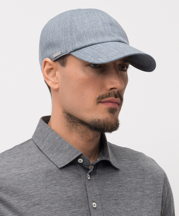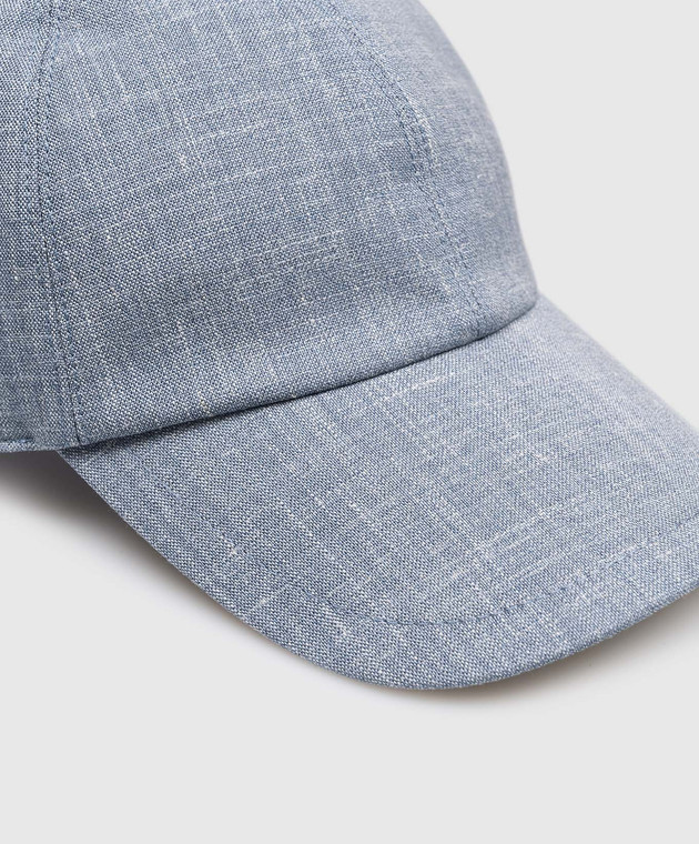 Блакитна кепка з вовни, шовку і льону