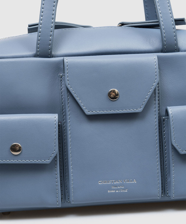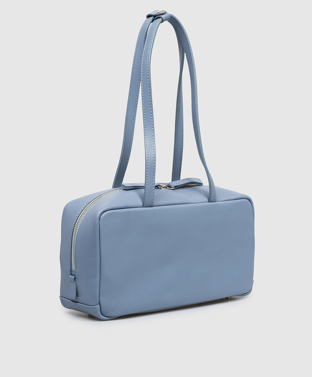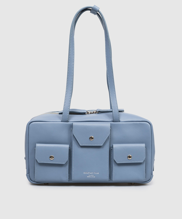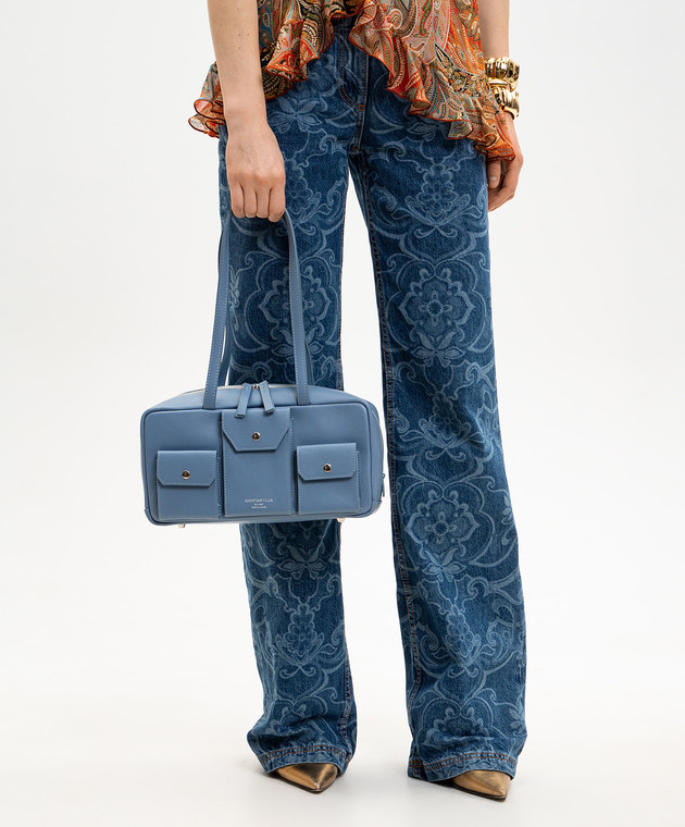 Блакитна шкіряна сумка з принтом логотипа