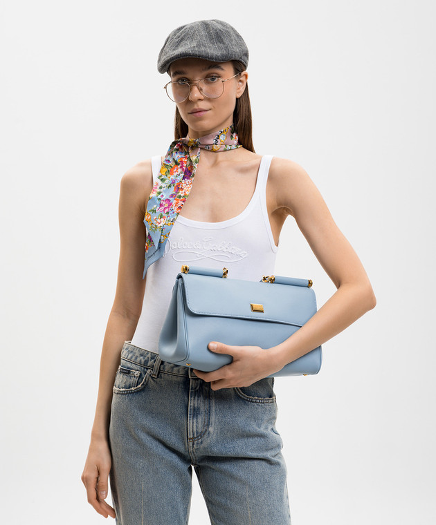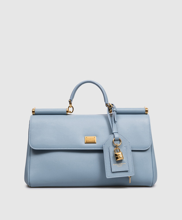 Блакитна шкіряна сумка-сетчел Sicily