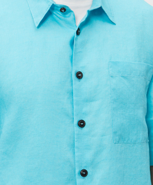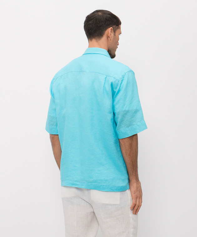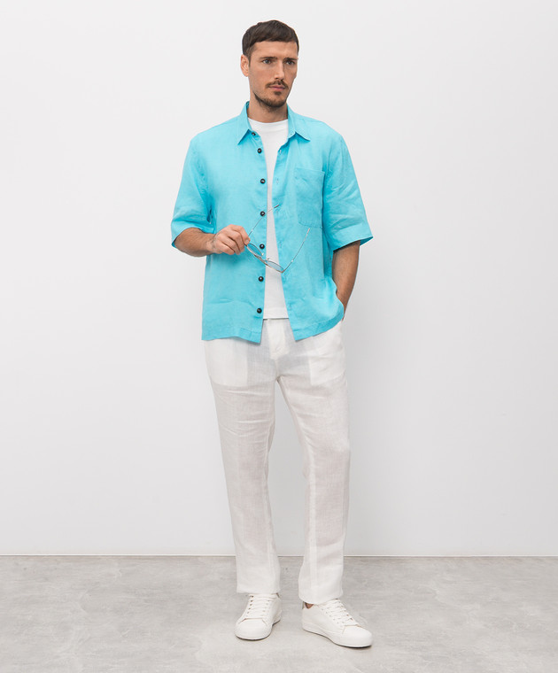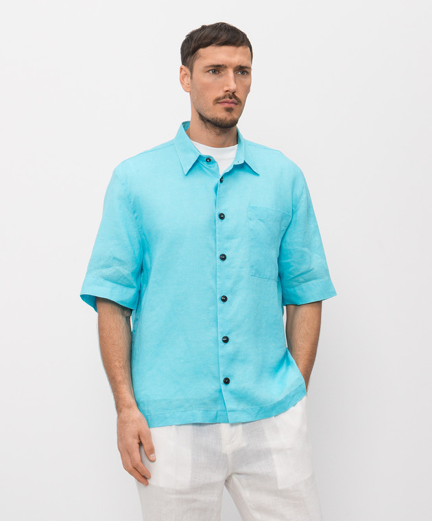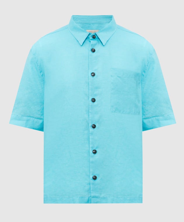 Блакитна сорочка з льону з короткими рукавами