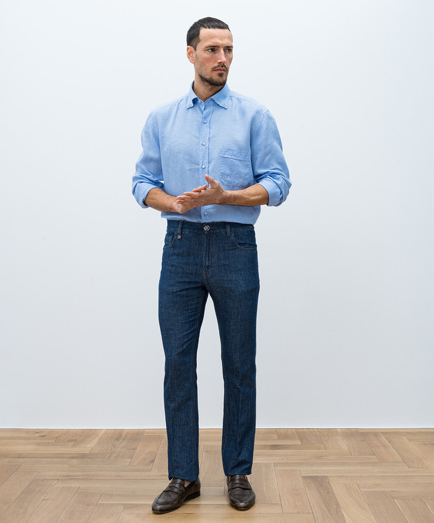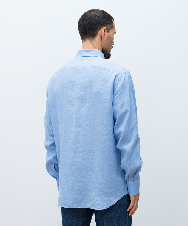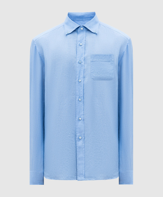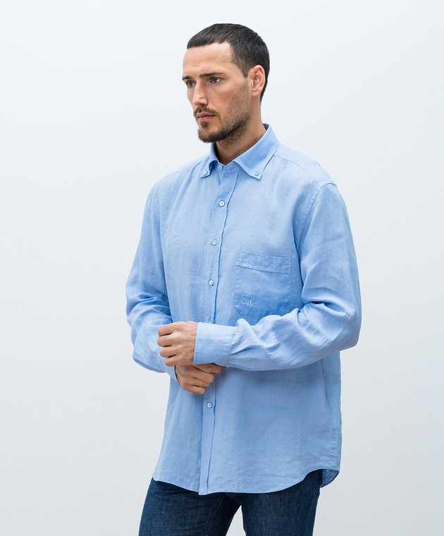 Блакитна сорочка з льону з монограмою логотипа