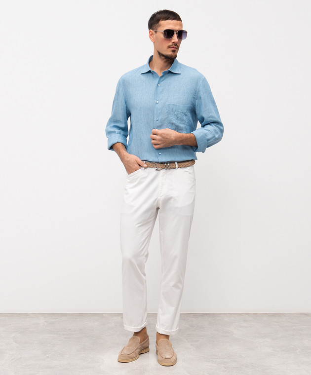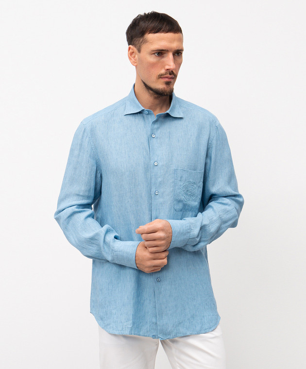 Блакитна сорочка з льону