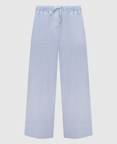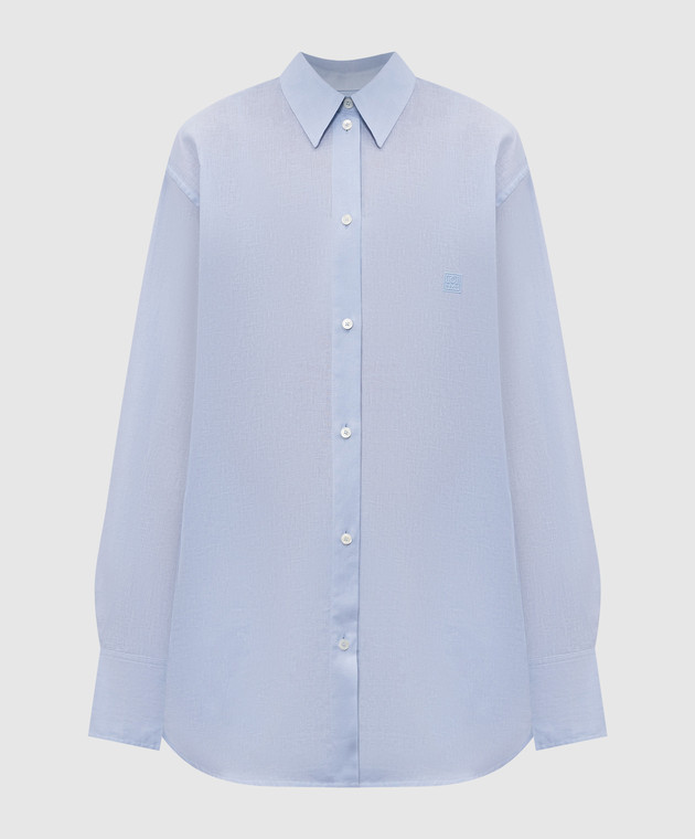 Блакитна сорочка з льоном з вишивкою монограми