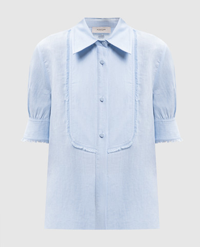 Блакитна сорочка з льоном з вишивкою монограми в клітинку