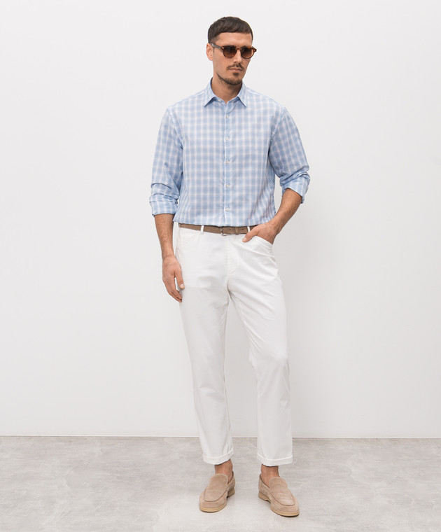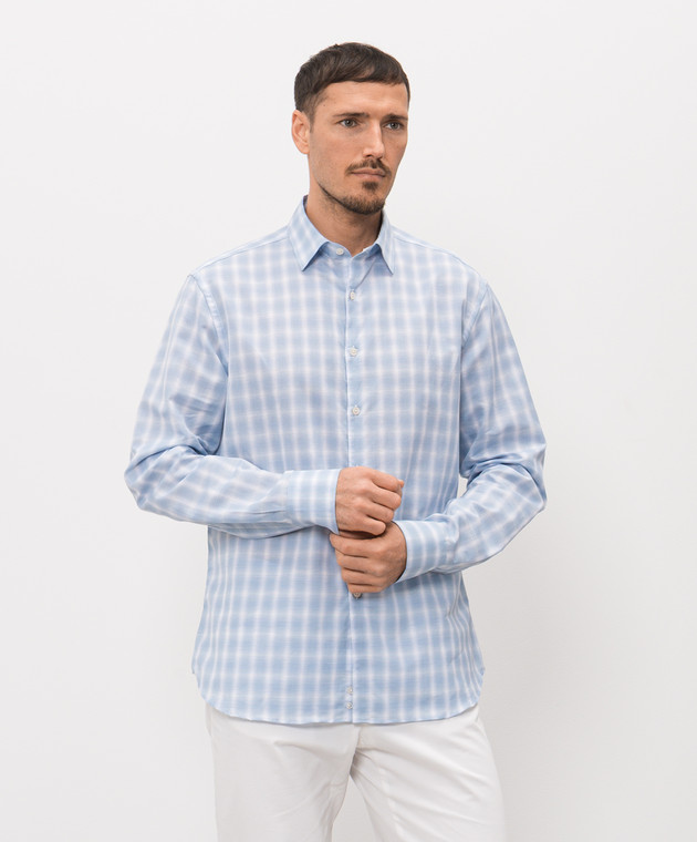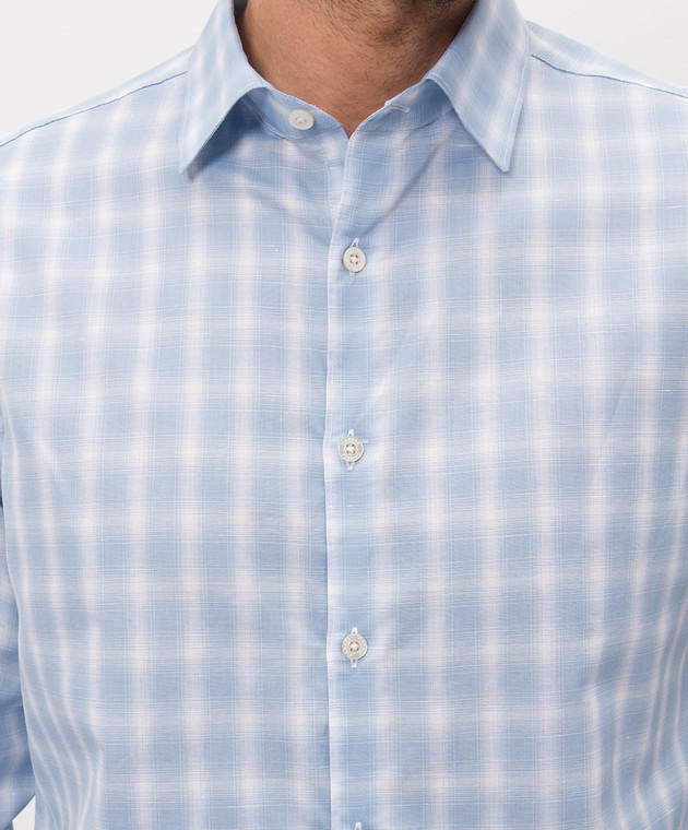 Блакитна сорочка з льоном в клітинку