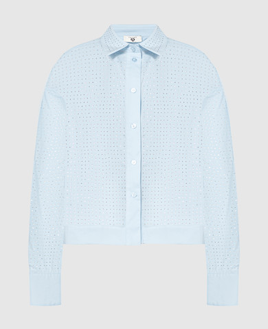 Блакитна сорочка з квітковою вишивкою