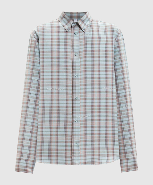 Блакитна сорочка у візерунок з вишивкою логотипа